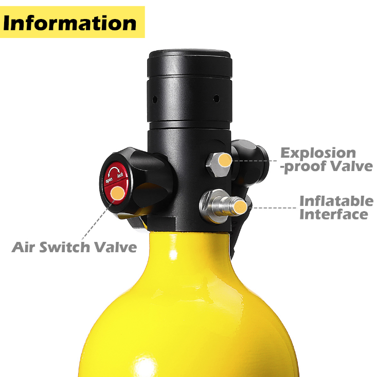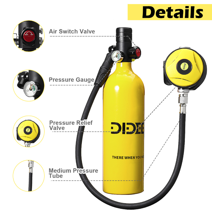 - With a 1L capacity, the tank provides approximately 15–20 minutes of underwater breathing time—ideal for short dives, emergency use, or as a backup air source.